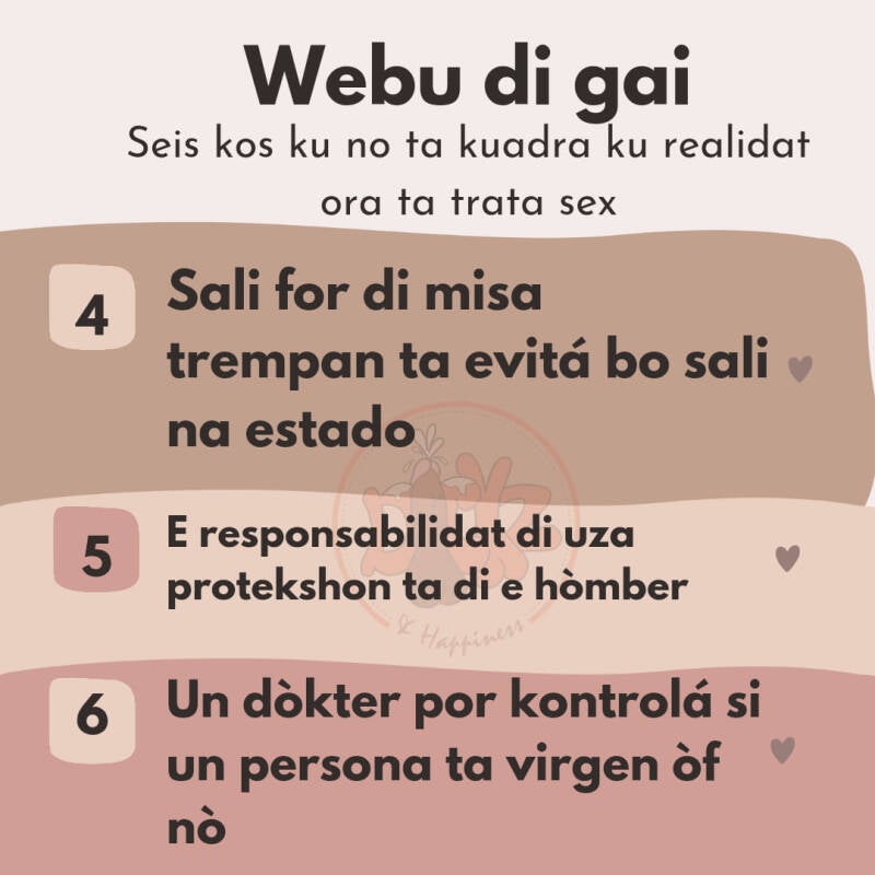Manera nos tur sa, nos kultura gusta kere den web'i gai. Awe mi a disidí di trese e 6 nan mas komun ora ta trata sex.